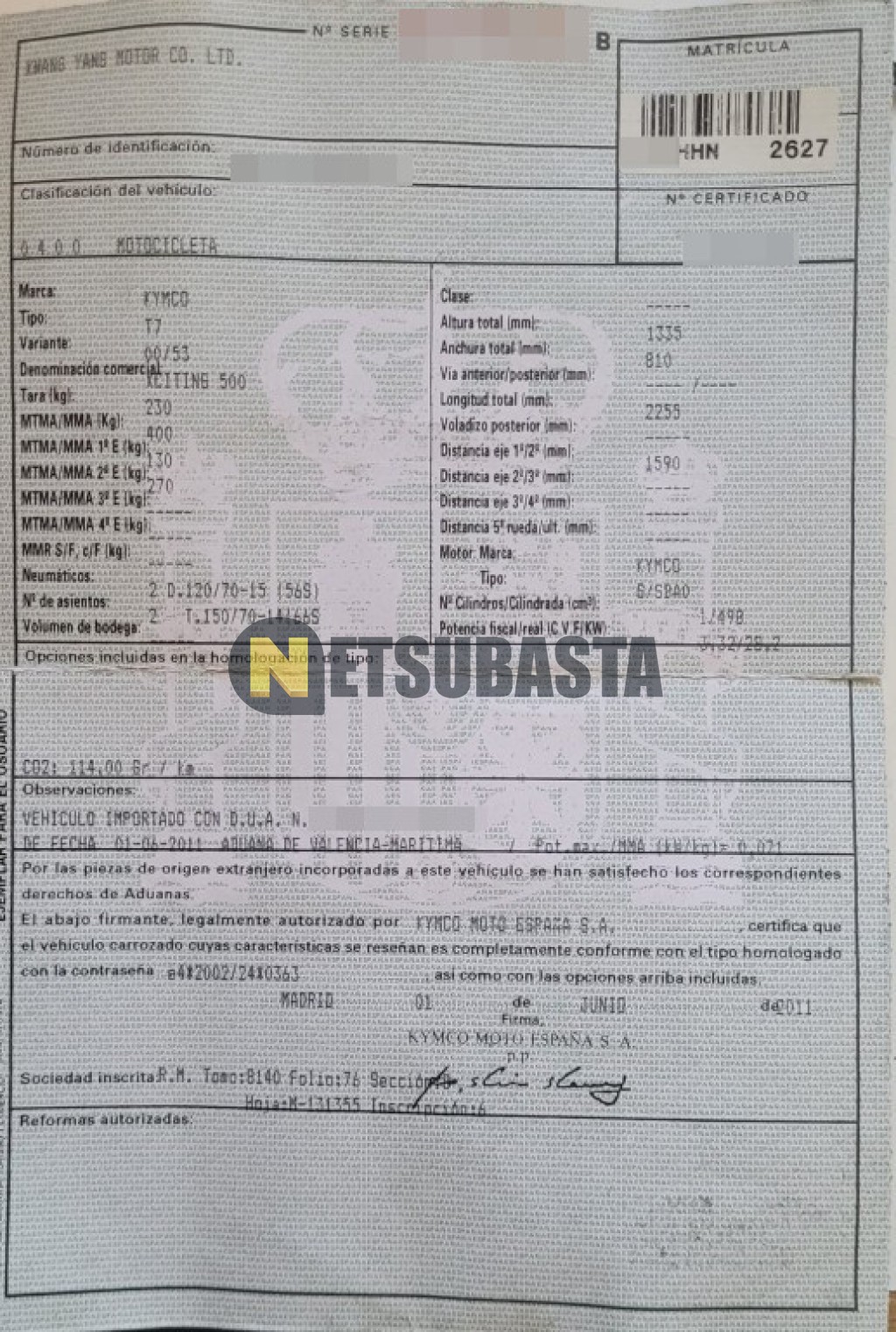 Subasta de Kymco Xciting 500 ABS 2011 Averiados, Marca Kymco, Modelo Xciting 500 ABS, Combustible Gasolina, Kilometraje 79.000 KM, Fecha 1ª matriculación 12/2011, Matrícula ****HHN, Color Exterior , Color Interior , IVA REBU y Ubicación Madrid.