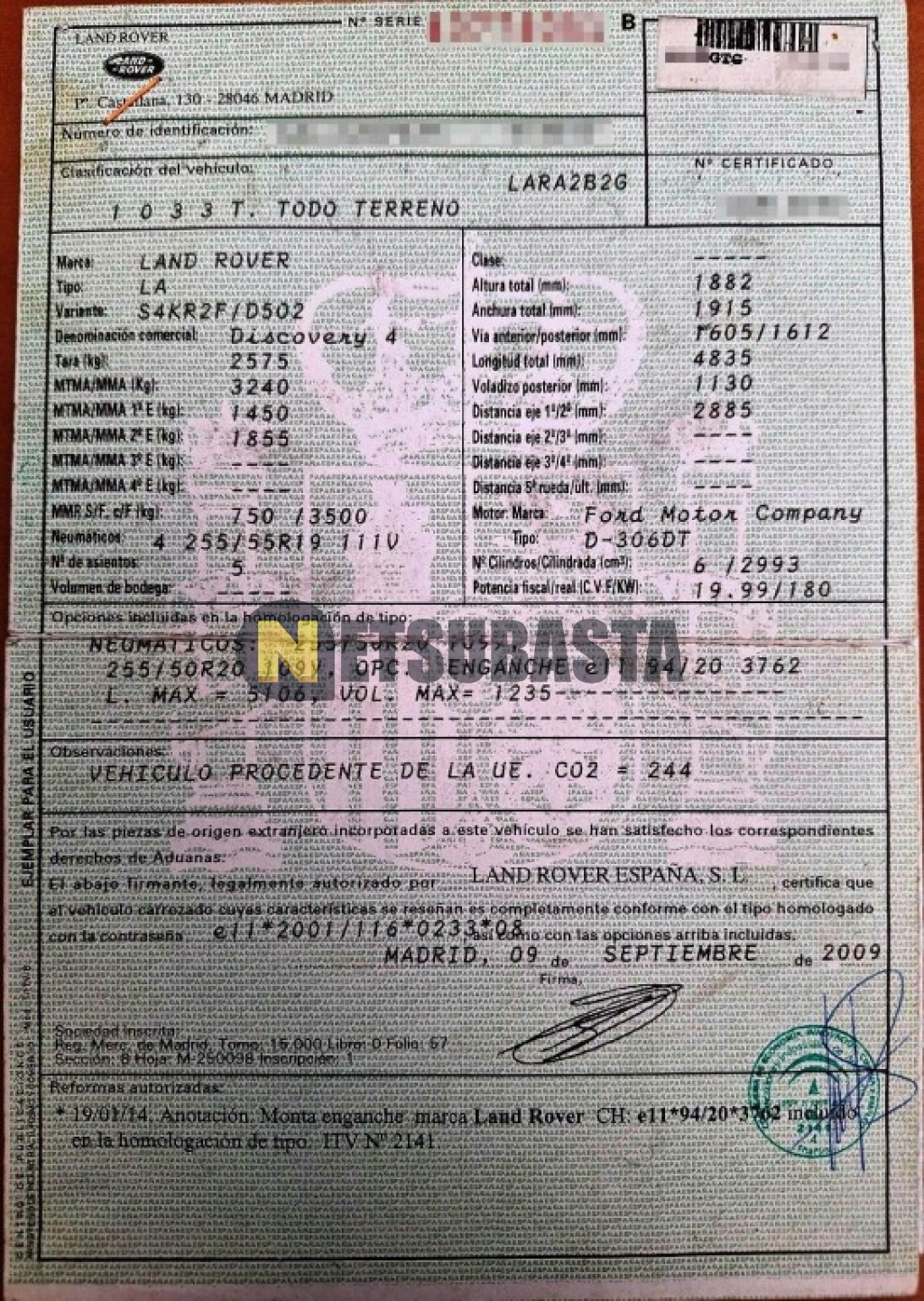 - Modelo:Discovery 4 3.0 TDV6 Aut.