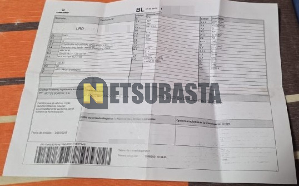 Subasta de Macbor Rockster 125 2021 Averiados, Marca Macbor, Modelo Rockster 125, Combustible Gasolina, Kilometraje 8.500 KM, Fecha 1ª matriculación 06/2021, Matrícula ****LRD, Color Exterior , Color Interior , IVA REBU y Ubicación Valencia.