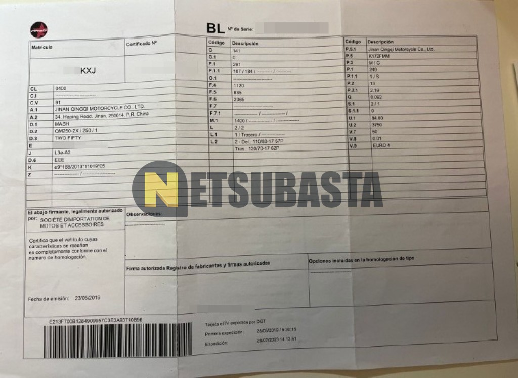 Recuerde que si lo desea, puede imprimir la ficha del vehículo Mash Two Fifty 250 2019 con todas sus características técnicas.