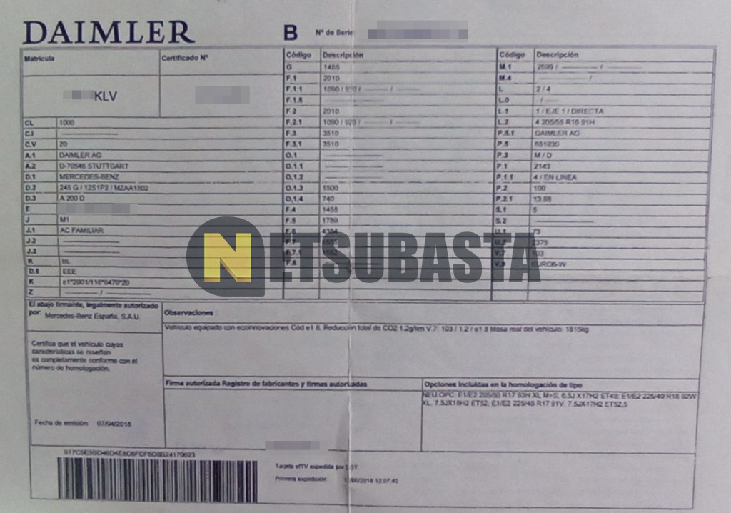 Subasta de Mercedes-Benz A 200 d 7G-DCT 2018 Averiados, Marca Mercedes-Benz, Modelo A 200 d 7G-DCT, Combustible Diésel, Kilometraje 230.000 KM, Fecha 1ª matriculación 06/2018, Matrícula ****KLV, Color Exterior , Color Interior , IVA REBU y Ubicación Cáceres.