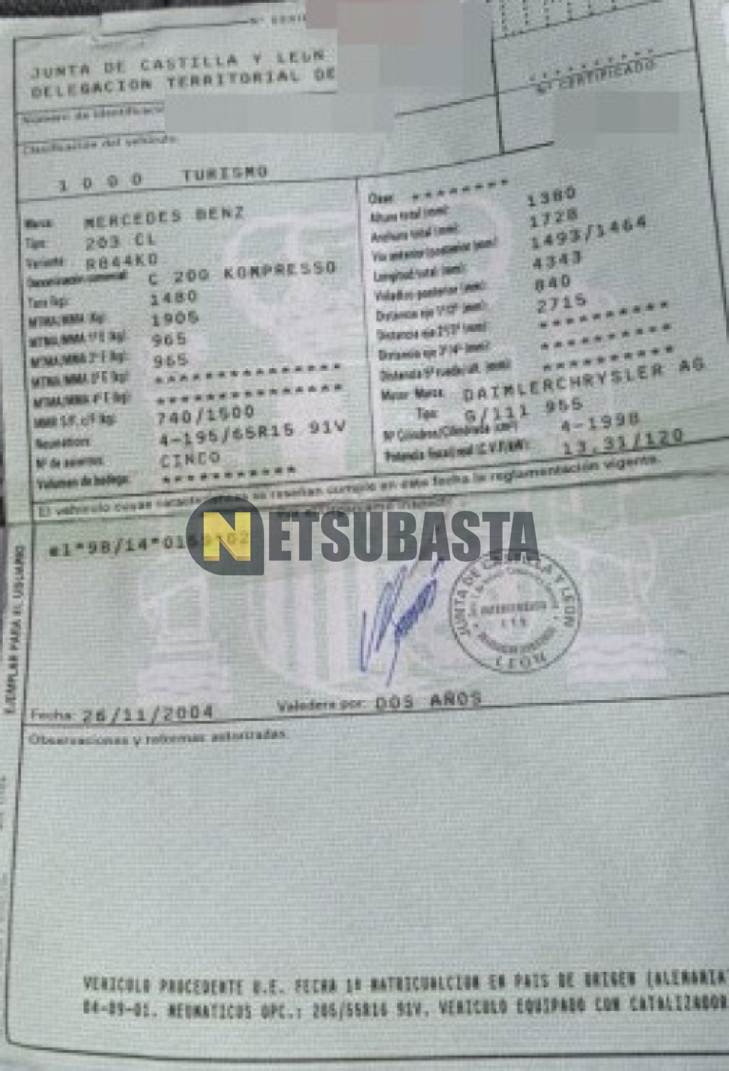 Subasta de Mercedes-Benz C 200 K Sportcoupé 2001 Siniestrados, Marca Mercedes-Benz, Modelo C 200 K Sportcoupé, Combustible Gasolina, Kilometraje 165.000 KM, Fecha 1ª matriculación 09/2001, Matrícula ****DHH, Color Exterior , Color Interior , IVA REBU y Ubicación León.