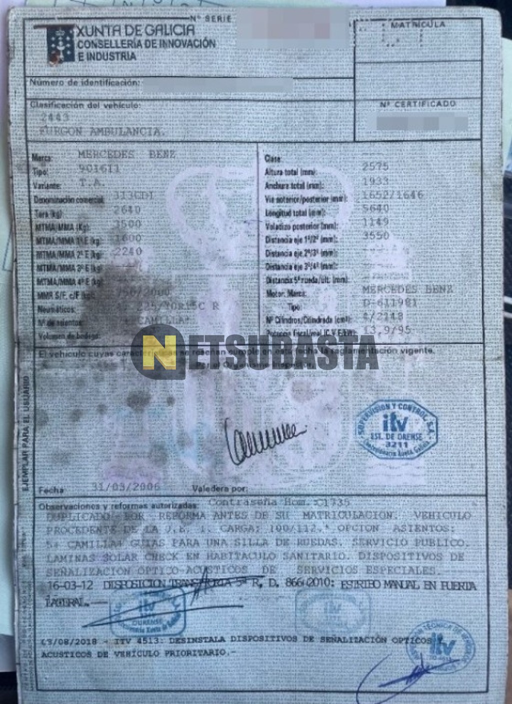 Subasta de Mercedes-Benz Sprinter 313 CDI Camperizada 2006 Averiados, Marca Mercedes-Benz, Modelo Sprinter 313 CDI Camperizada, Combustible Diésel, Kilometraje 605.000 KM, Fecha 1ª matriculación 07/2006, Matrícula ****FCY, Color Exterior , Color Interior , IVA REBU y Ubicación Madrid.
