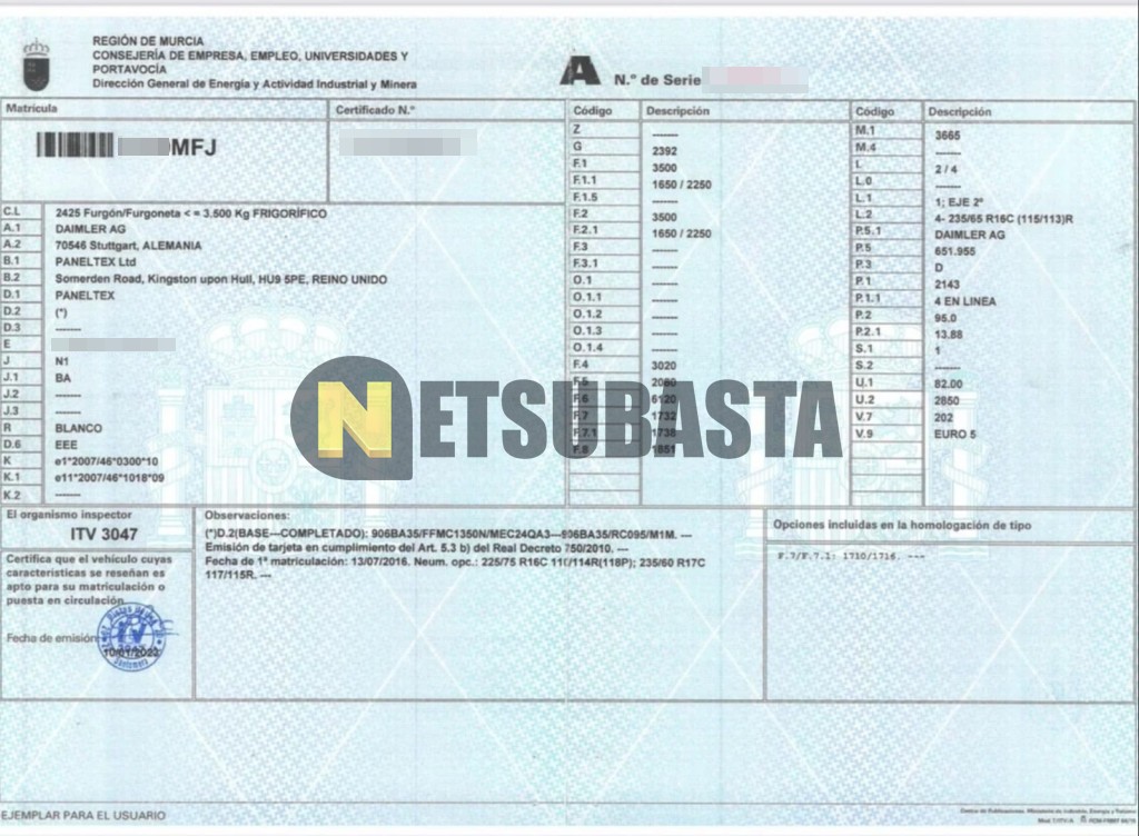 Recuerde que si lo desea, puede imprimir la ficha del vehículo Mercedes-Benz Sprinter 313 CDI Paneltex Isotermo 2016 con todas sus características técnicas.