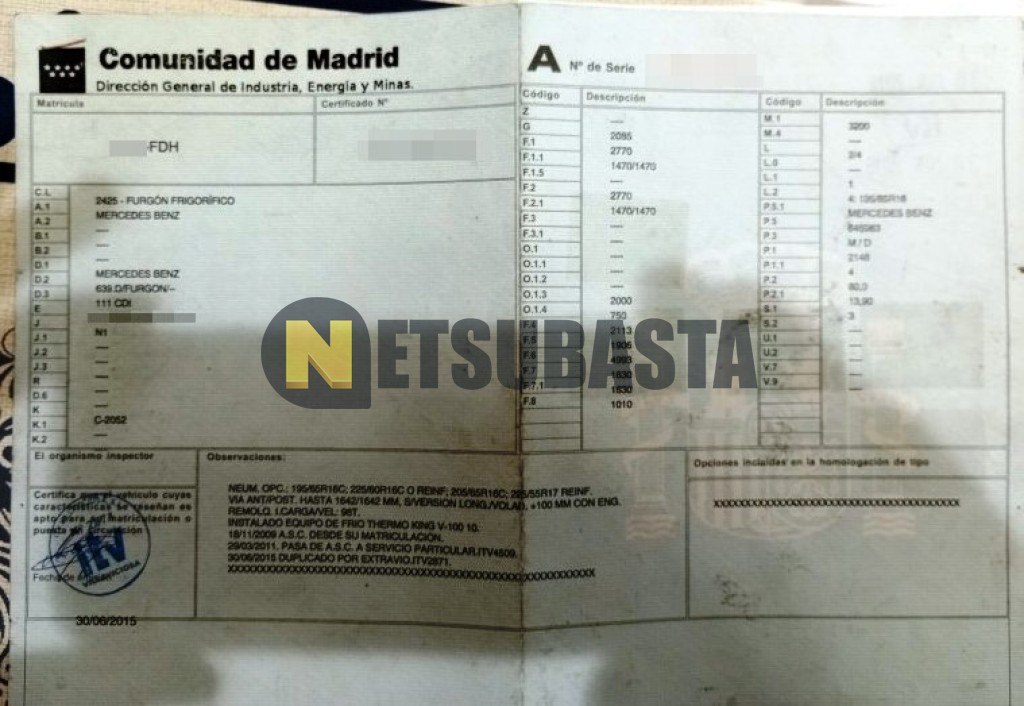 Subasta de Mercedes-Benz Vito 111 CDI Isotermo 2006 Averiados, Marca Mercedes-Benz, Modelo Vito 111 CDI Isotermo, Combustible Diésel, Kilometraje 361.000 KM, Fecha 1ª matriculación 07/2006, Matrícula ****FDH, Color Exterior , Color Interior , IVA REBU y Ubicación Sevilla.