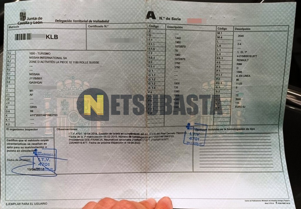 Subasta de Nissan Qashqai 1.6 dCi 2015 Averiados, Marca Nissan, Modelo Qashqai 1.6 dCi, Combustible Diésel, Kilometraje 326.000 KM, Fecha 1ª matriculación 02/2015, Matrícula ****KLB, Color Exterior , Color Interior , IVA REBU y Ubicación Córdoba.