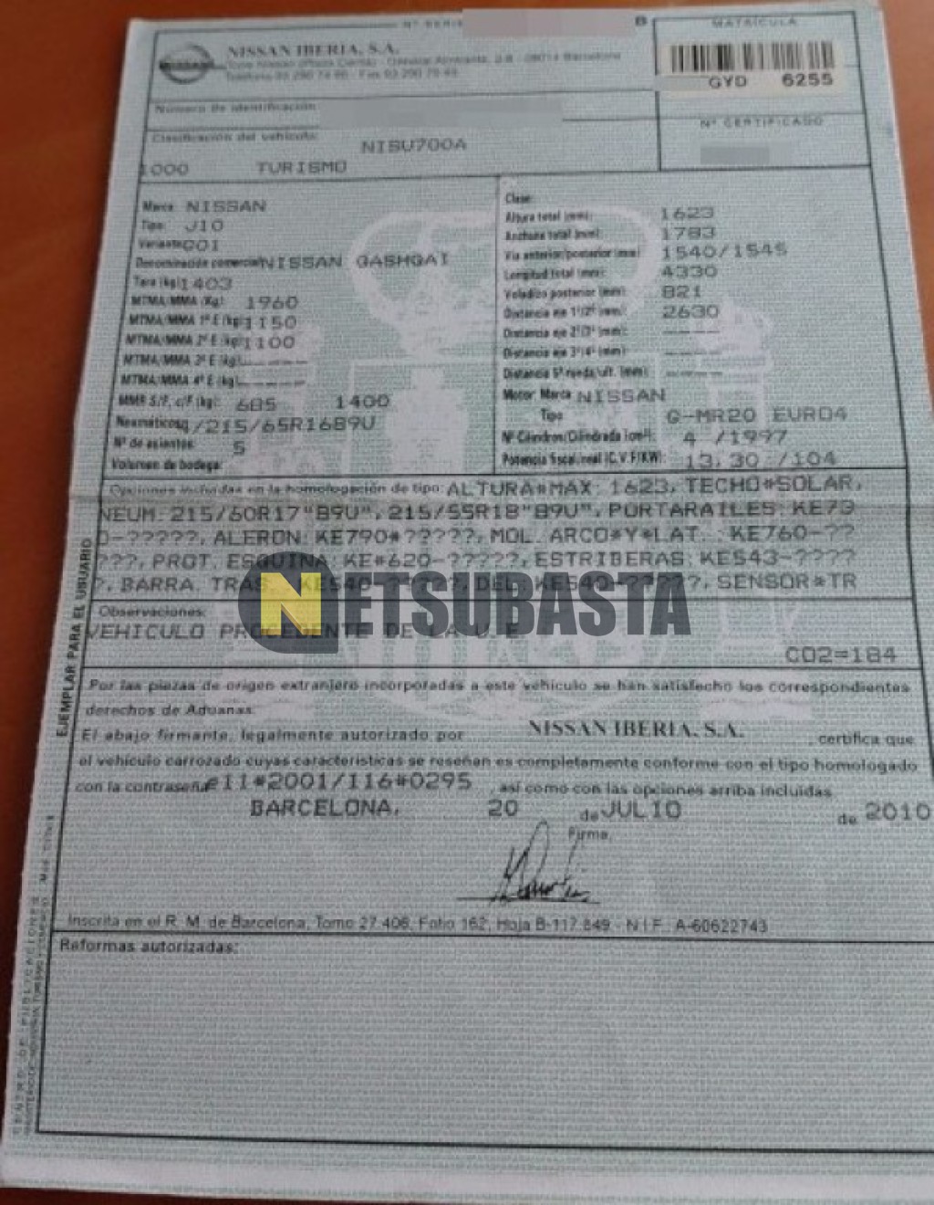 Subasta de Nissan Qashqai 2.0 2010 Siniestrados, Marca Nissan, Modelo Qashqai 2.0, Combustible Gasolina, Kilometraje 174.000 KM, Fecha 1ª matriculación 08/2010, Matrícula ****GYD, Color Exterior , Color Interior , IVA REBU y Ubicación Madrid.
