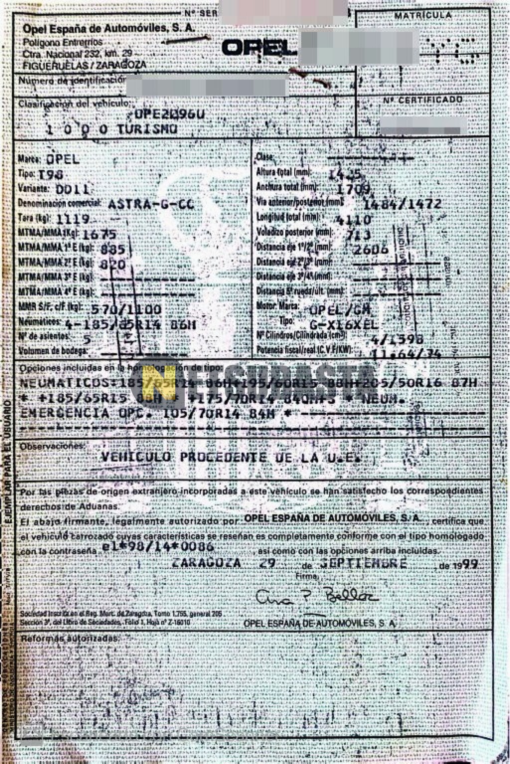 - Fecha primera matriculación:10/1999