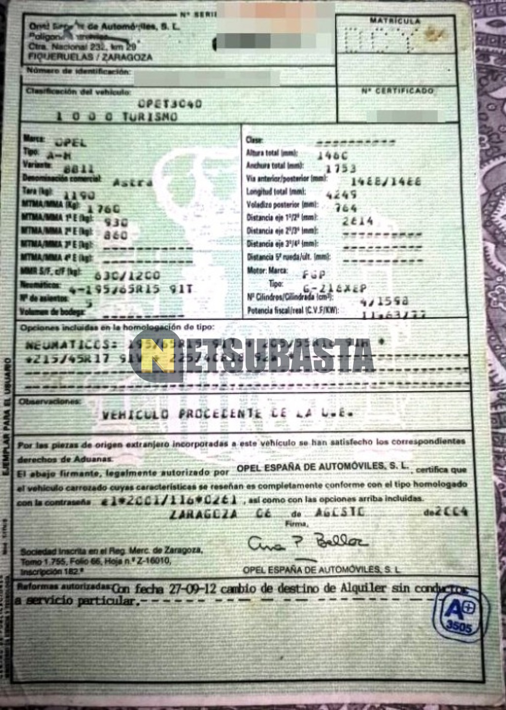 Subasta de Opel Astra 1.6 2004 Averiados, Marca Opel, Modelo Astra 1.6, Combustible Gasolina, Kilometraje 176.000 KM, Fecha 1ª matriculación 11/2004, Matrícula ****DCY, Color Exterior , Color Interior , IVA REBU y Ubicación Islas Baleares.