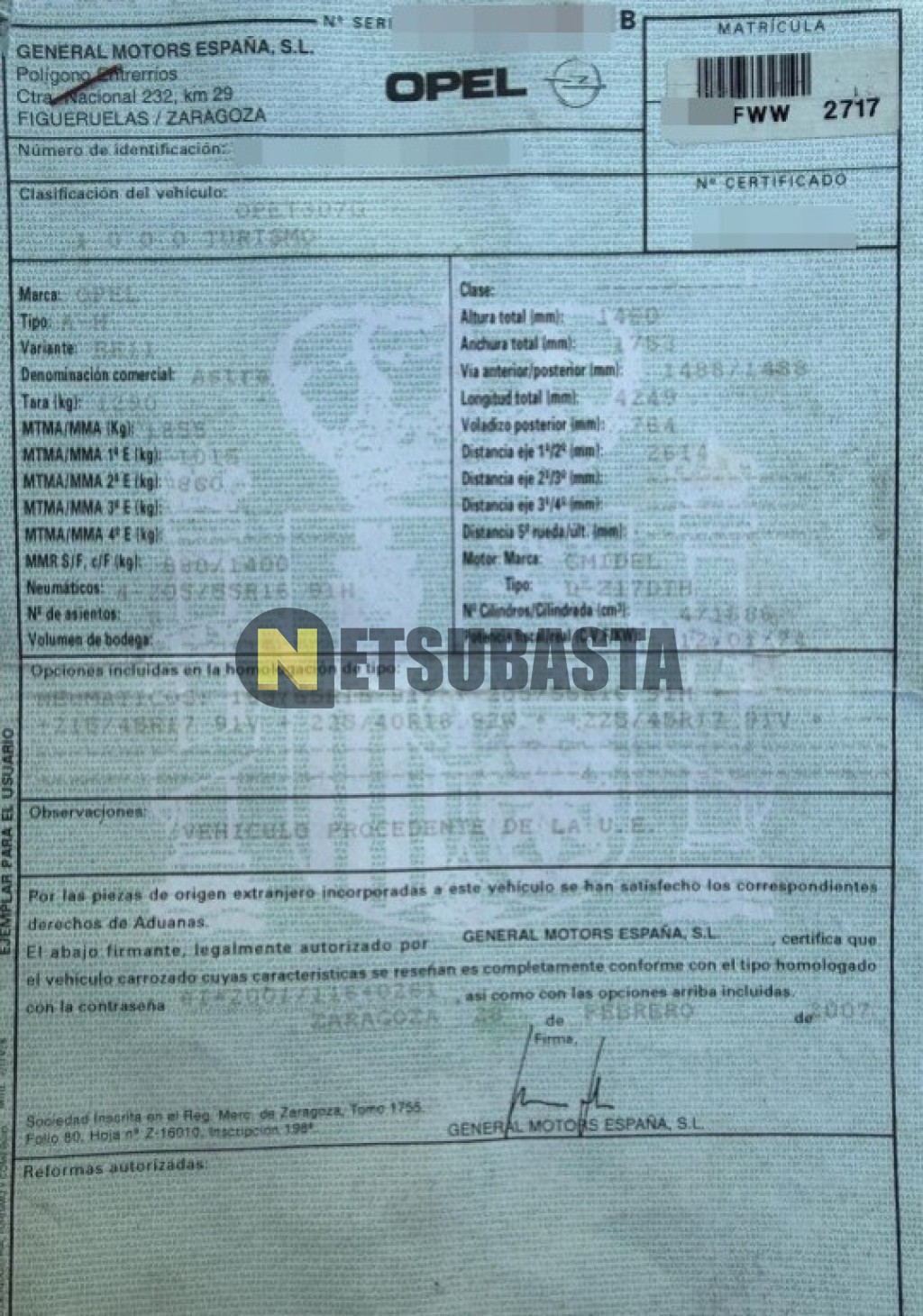 - Matrícula:****FWW