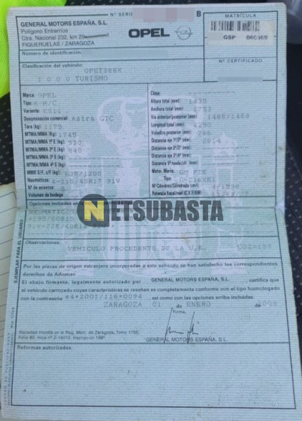 Subasta de Opel Astra GTC 1.6 16V 2009 Siniestrados, Marca Opel, Modelo Astra GTC 1.6 16V, Combustible Gasolina, Kilometraje 170.000 KM, Fecha 1ª matriculación 12/2009, Matrícula ****GSP, Color Exterior , Color Interior , IVA REBU y Ubicación Alicante.