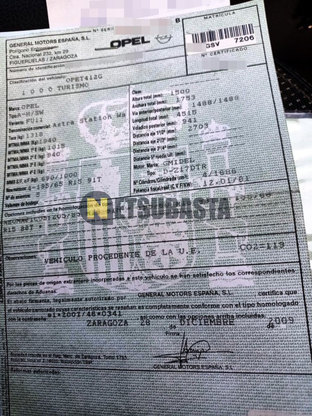 Subasta de Opel Astra SW 1.7 CDTi 2010 Averiados, Marca Opel, Modelo Astra SW 1.7 CDTi, Combustible Diésel, Kilometraje 230.000 KM, Fecha 1ª matriculación 01/2010, Matrícula ****GSV, Color Exterior , Color Interior , IVA REBU y Ubicación Alicante.