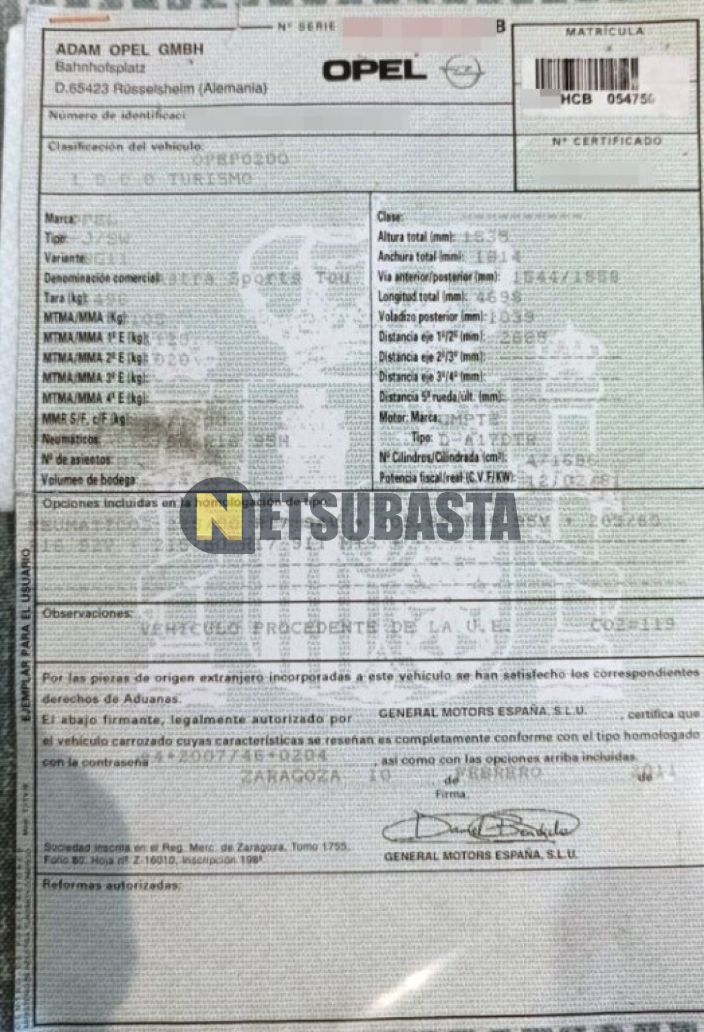 Subasta de Opel Astra Tourer 1.7 CDTI 2011 Averiados, Marca Opel, Modelo Astra Tourer 1.7 CDTI, Combustible Diésel, Kilometraje 305.000 KM, Fecha 1ª matriculación 02/2011, Matrícula ****HCB, Color Exterior , Color Interior , IVA REBU y Ubicación Sevilla.