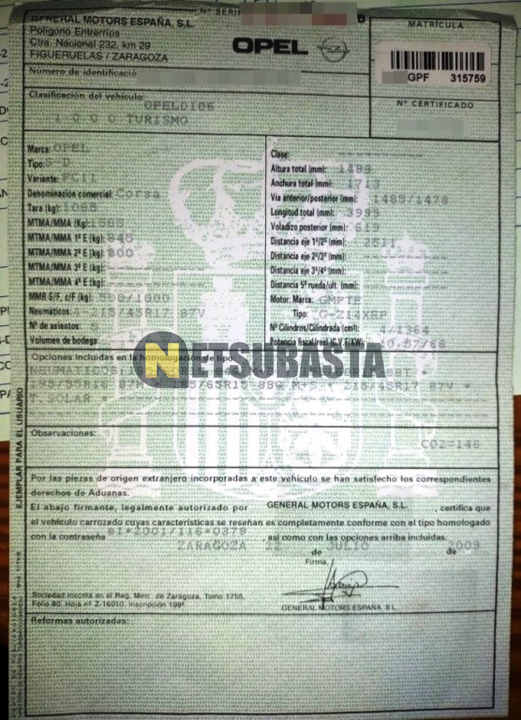 Subasta de Opel Corsa 1.4 2009 Averiados, Marca Opel, Modelo Corsa 1.4, Combustible Gasolina, Kilometraje 225.000 KM, Fecha 1ª matriculación 08/2009, Matrícula ****GPF, Color Exterior , Color Interior , IVA REBU y Ubicación Santa Cruz de Tenerife.