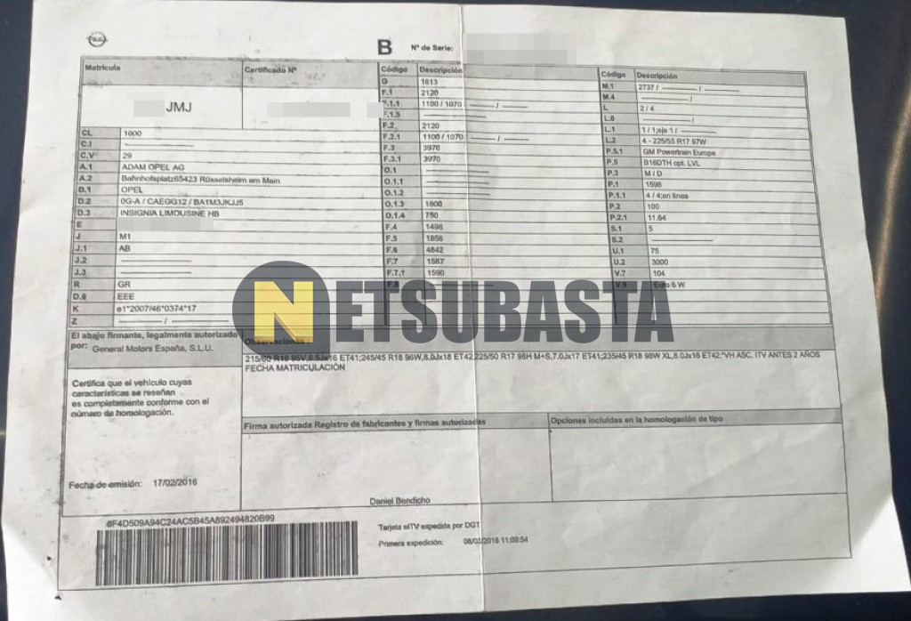 Subasta de Opel Insignia 1.6 CDTI 2016 Averiados, Marca Opel, Modelo Insignia 1.6 CDTI , Combustible Diésel, Kilometraje 162.000 KM, Fecha 1ª matriculación 03/2016, Matrícula ****JMJ, Color Exterior , Color Interior , IVA REBU y Ubicación Valencia.