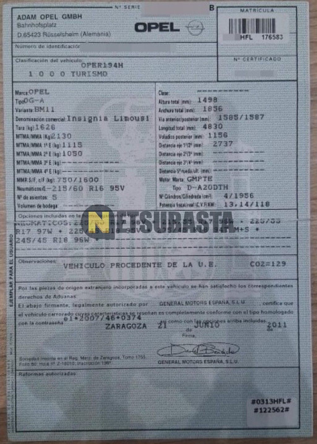 Subasta de Opel Insignia 2.0 CDTI ecoFLEX 2011 Averiados, Marca Opel, Modelo Insignia 2.0 CDTI ecoFLEX, Combustible Diésel, Kilometraje 220.000 KM, Fecha 1ª matriculación 07/2011, Matrícula ****HFL, Color Exterior , Color Interior , IVA REBU y Ubicación Barcelona.