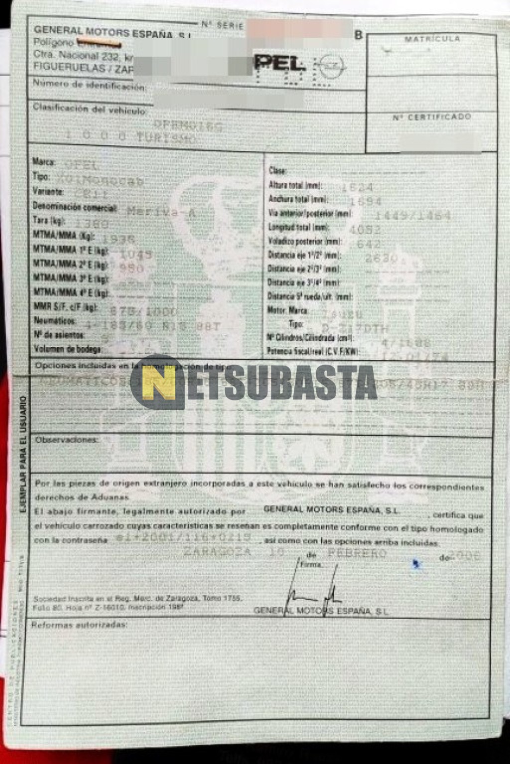 Subasta de Opel Meriva 1.7 CDTi 2006 Averiados, Marca Opel, Modelo Meriva 1.7 CDTi, Combustible Diésel, Kilometraje 324.000 KM, Fecha 1ª matriculación 07/2006, Matrícula ****FDL, Color Exterior , Color Interior , IVA REBU y Ubicación La Coruña.