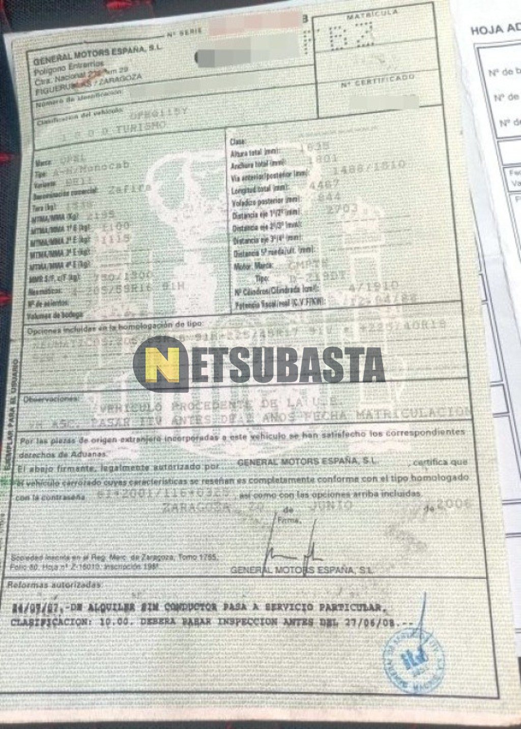 Subasta de Opel Zafira 1.9 CDTi 2006 Averiados, Marca Opel, Modelo Zafira 1.9 CDTi, Combustible Diésel, Kilometraje 428.000 KM, Fecha 1ª matriculación 06/2006, Matrícula ****FBZ, Color Exterior , Color Interior , IVA REBU y Ubicación Murcia.