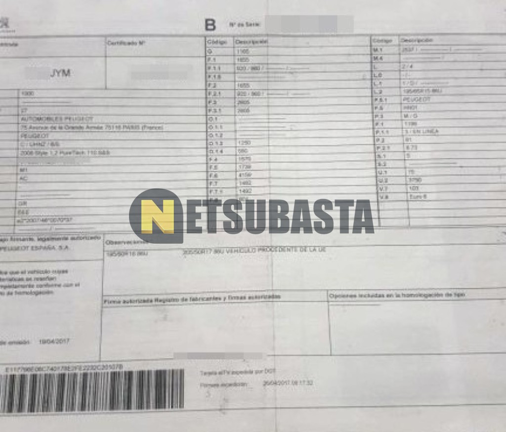 Subasta de Peugeot 2008 1.2 PureTech 2017 Averiados, Marca Peugeot, Modelo 2008 1.2 PureTech, Combustible Gasolina, Kilometraje 115.000 KM, Fecha 1ª matriculación 04/2017, Matrícula ****JYM, Color Exterior , Color Interior , IVA REBU y Ubicación Zaragoza.