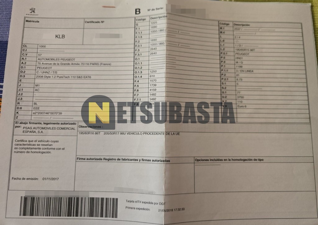 Subasta de Peugeot 2008 1.2 PureTech EAT6 2018 Averiados, Marca Peugeot, Modelo 2008 1.2 PureTech EAT6, Combustible Gasolina, Kilometraje 110.000 KM, Fecha 1ª matriculación 05/2018, Matrícula ****KLB, Color Exterior , Color Interior , IVA REBU y Ubicación Alicante.