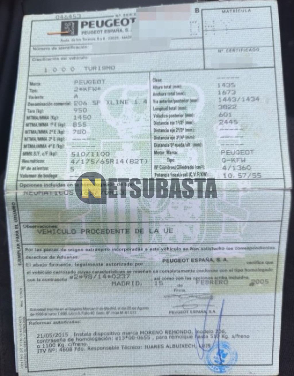 - Modelo:206 1.4