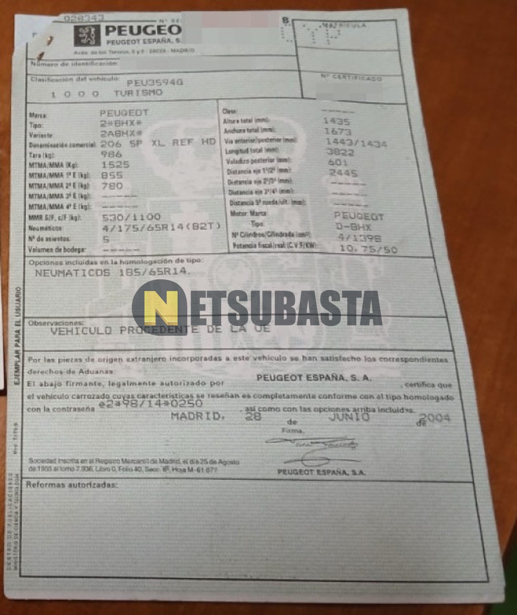 Subasta de Peugeot 206 1.4 HDi 2004 Averiados, Marca Peugeot, Modelo 206 1.4 HDi, Combustible Diésel, Kilometraje 300.000 KM, Fecha 1ª matriculación 07/2004, Matrícula ****CYP, Color Exterior , Color Interior , IVA REBU y Ubicación Madrid.