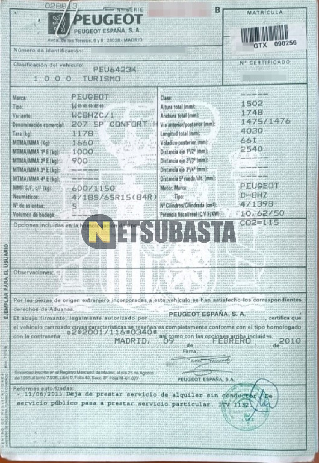 - Matrícula:****GTX