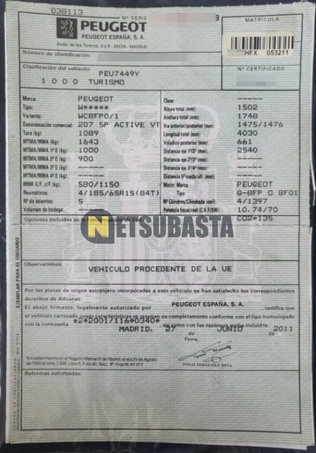 Subasta de Peugeot 207 1.4 VTi 2011 Averiados, Marca Peugeot, Modelo 207 1.4 VTi, Combustible Gasolina, Kilometraje 175.000 KM, Fecha 1ª matriculación 08/2011, Matrícula ****HFX, Color Exterior , Color Interior , IVA REBU y Ubicación Santa Cruz de Tenerife.