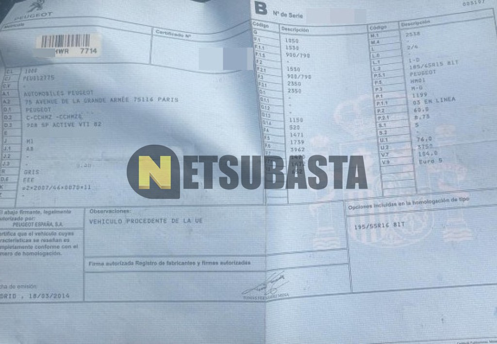 Subasta de Peugeot 208 1.2 PureTech 2014 Averiados, Marca Peugeot, Modelo 208 1.2 PureTech, Combustible Gasolina, Kilometraje 182.000 KM, Fecha 1ª matriculación 04/2014, Matrícula ****HWR, Color Exterior , Color Interior , IVA REBU y Ubicación Murcia.