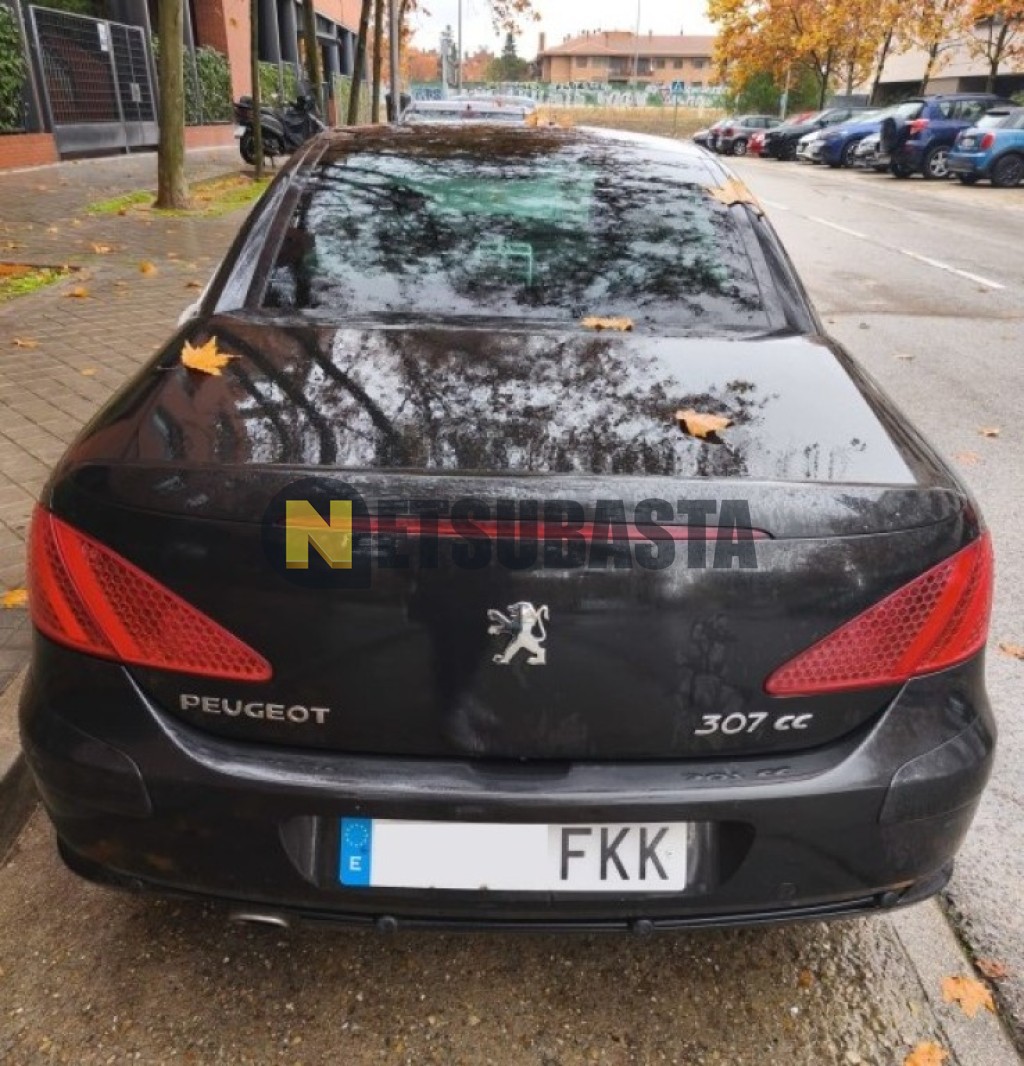 Subasta de Peugeot 307 CC 1.6 2007 Averiados, Marca Peugeot, Modelo 307 CC 1.6, Combustible Gasolina, Kilometraje 155.000 KM, Fecha 1ª matriculación 01/2007, Matrícula ****FKK, Color Exterior , Color Interior , IVA REBU y Ubicación Madrid.
