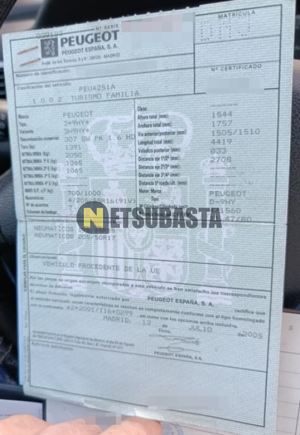 - Modelo:307 SW 1.6 HDI