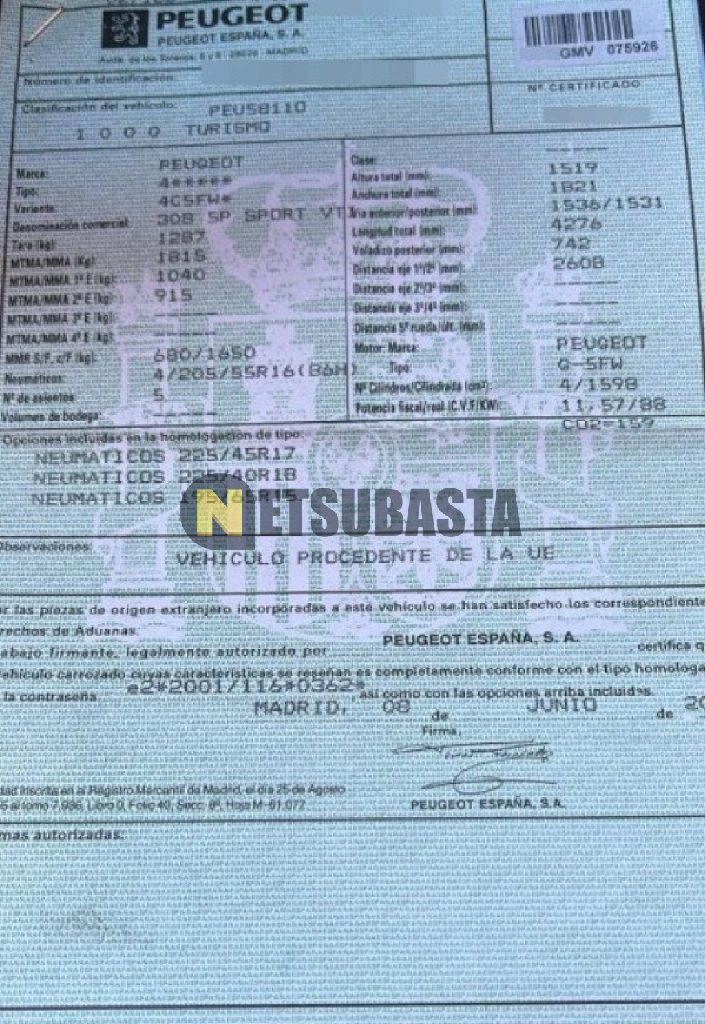 - Modelo:308 1.6 VTi