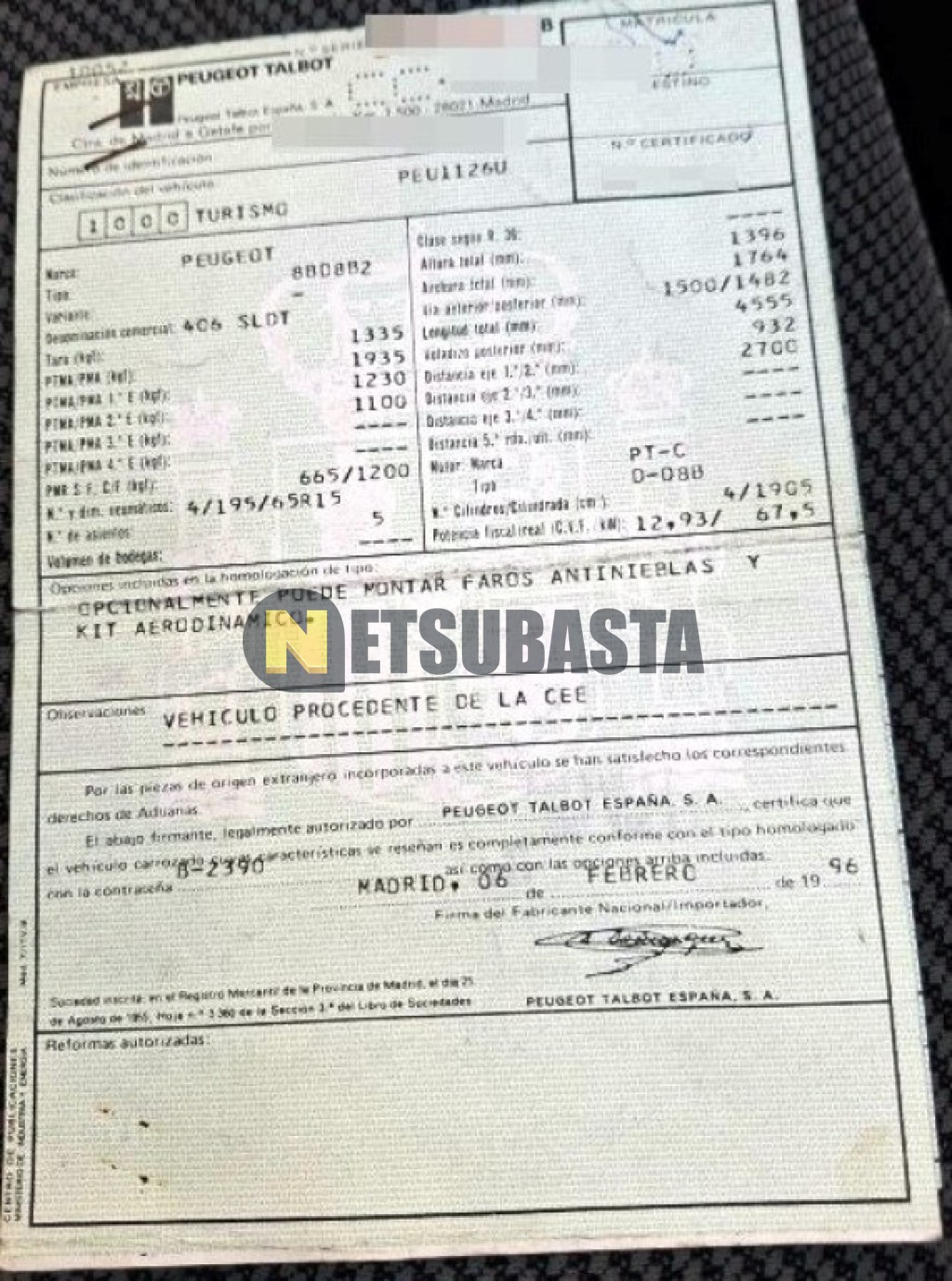 Subasta de Peugeot 406 1.9 TD 1996 Averiados, Marca Peugeot, Modelo 406 1.9 TD, Combustible Diésel, Kilometraje 400.000 KM, Fecha 1ª matriculación 03/1996, Matrícula CC****O, Color Exterior , Color Interior , IVA REBU y Ubicación Islas Baleares.