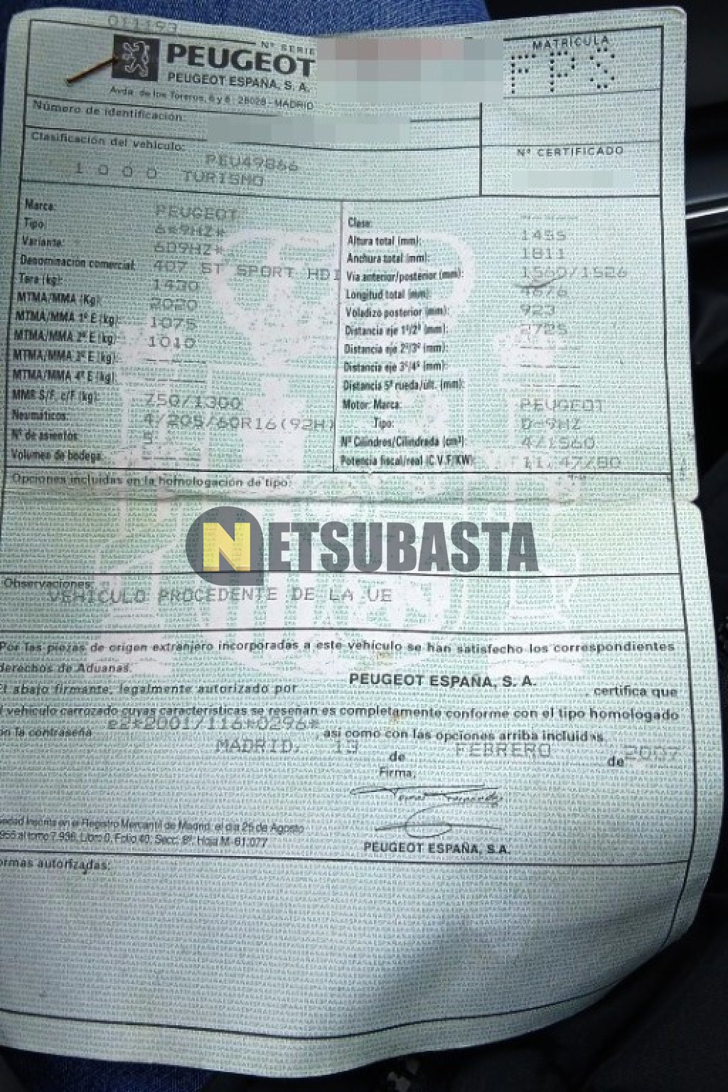 - Modelo:407 1.6 HDi