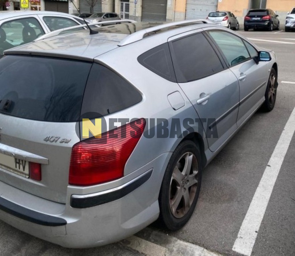 Subasta de Peugeot 407 SW 2.0 HDi 2006 Averiados, Marca Peugeot, Modelo 407 SW 2.0 HDi, Combustible Diésel, Kilometraje 330.000 KM, Fecha 1ª matriculación 11/2006, Matrícula ****FHV, Color Exterior , Color Interior , IVA REBU y Ubicación Barcelona.