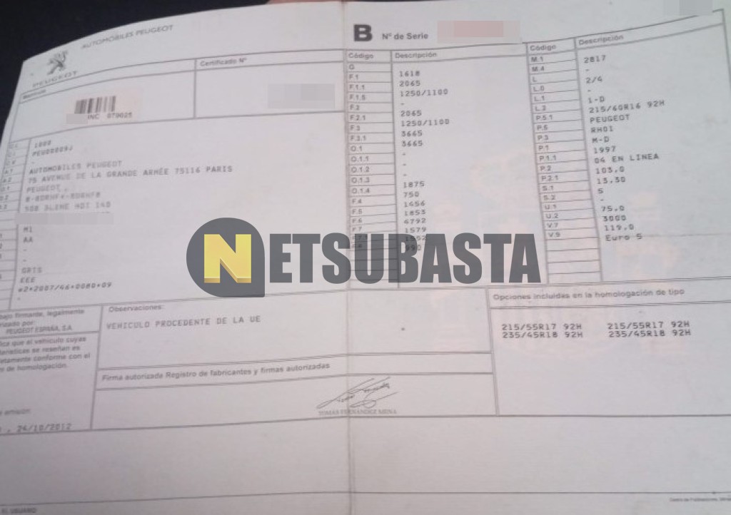 Subasta de Peugeot 508 2.0 HDi 2012 Siniestrados, Marca Peugeot, Modelo 508 2.0 HDi, Combustible Diésel, Kilometraje 192.000 KM, Fecha 1ª matriculación 12/2012, Matrícula ****HNC, Color Exterior , Color Interior , IVA REBU y Ubicación Badajoz.