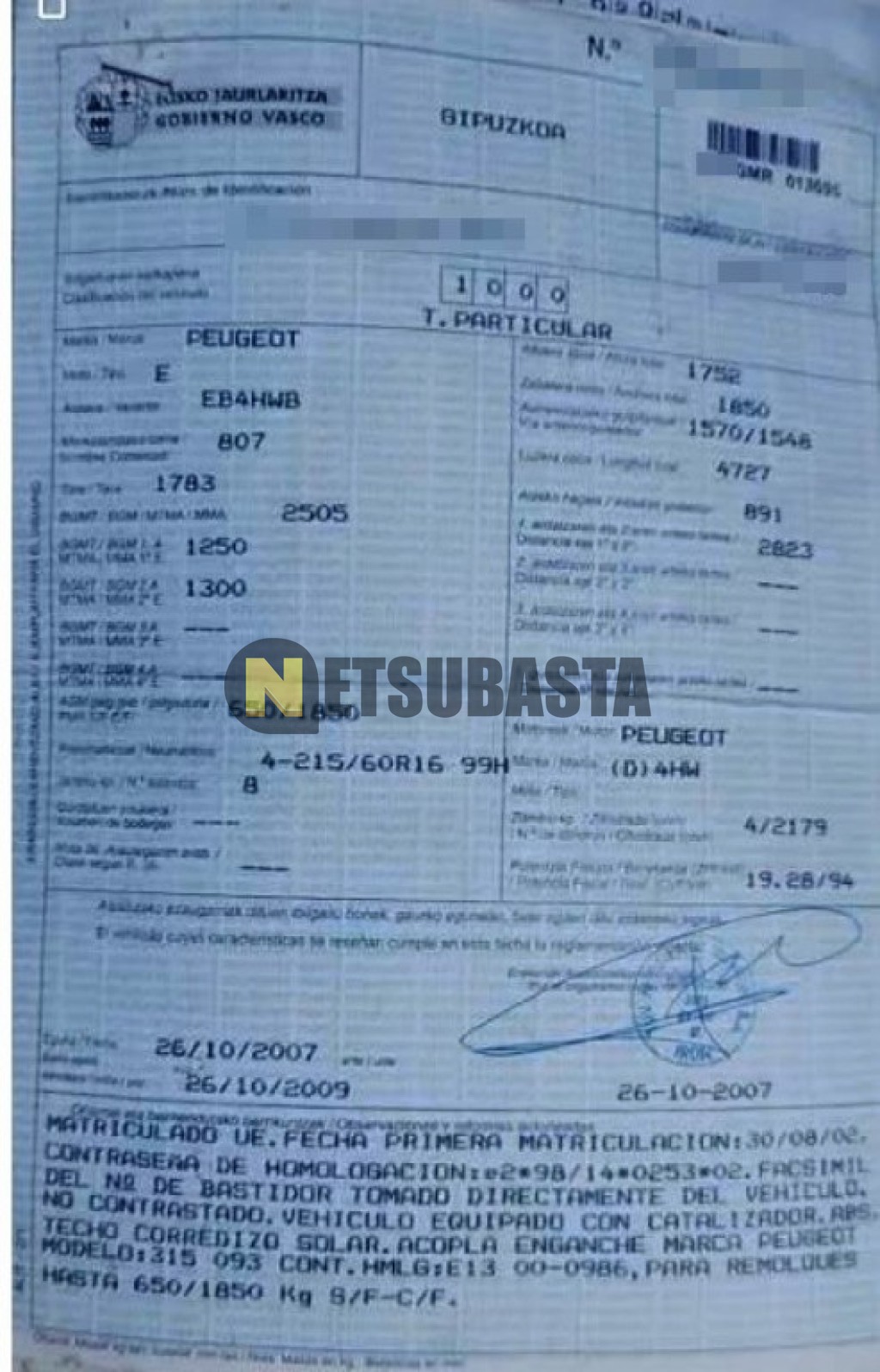 Fecha primera matriculación: