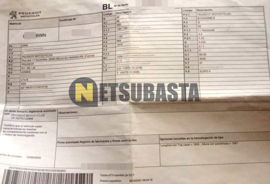 Subasta de Peugeot Kisbee 50 2021 Siniestrados, Marca Peugeot, Modelo Kisbee 50 , Combustible Gasolina, Kilometraje 38.000 KM, Fecha 1ª matriculación 12/2021, Matrícula C****BWN, Color Exterior , Color Interior , IVA REBU y Ubicación Islas Baleares.