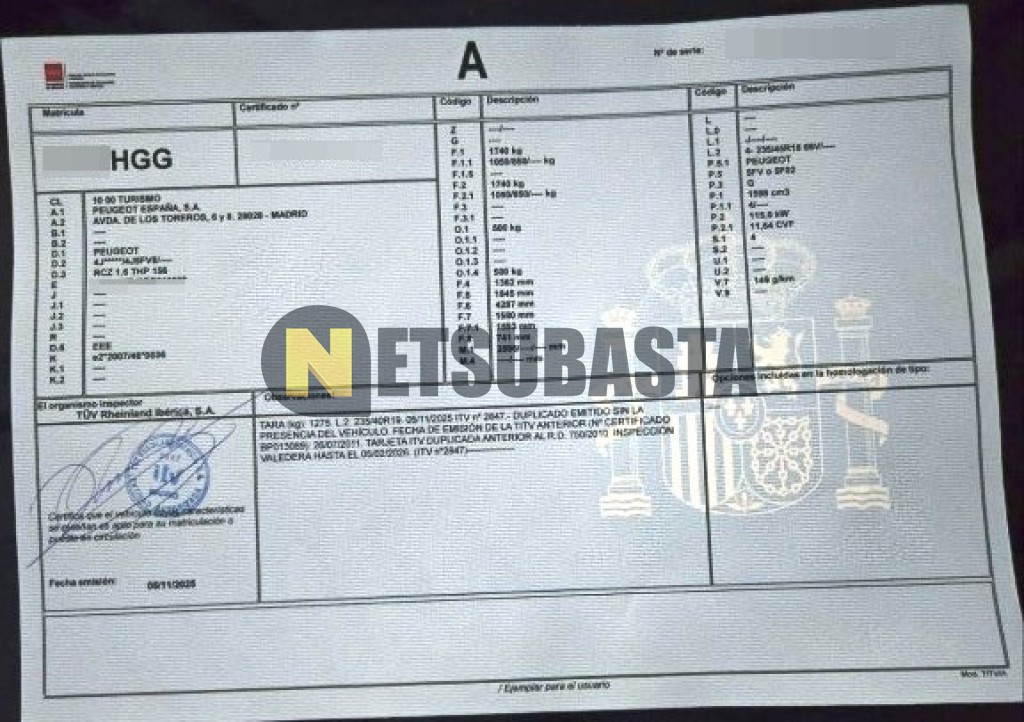 Subasta de Peugeot RCZ 1.6 THP 2011 Averiados, Marca Peugeot, Modelo RCZ 1.6 THP, Combustible Gasolina, Kilometraje 195.000 KM, Fecha 1ª matriculación 09/2011, Matrícula ****HGG, Color Exterior , Color Interior , IVA REBU y Ubicación Madrid.