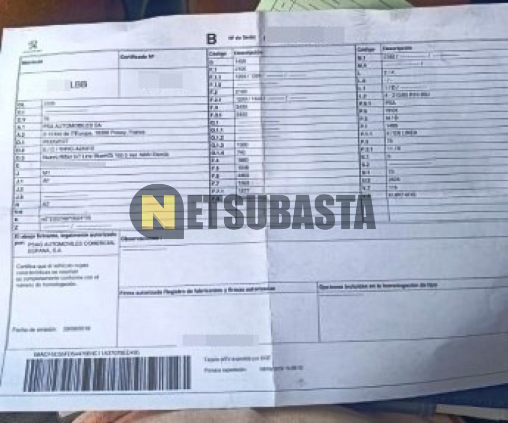 Subasta de Peugeot Rifter 1.5 BlueHDi 2019 Averiados, Marca Peugeot, Modelo Rifter 1.5 BlueHDi, Combustible Diésel, Kilometraje 115.000 KM, Fecha 1ª matriculación 09/2019, Matrícula ****LBB, Color Exterior , Color Interior , IVA REBU y Ubicación Santa Cruz de Tenerife.