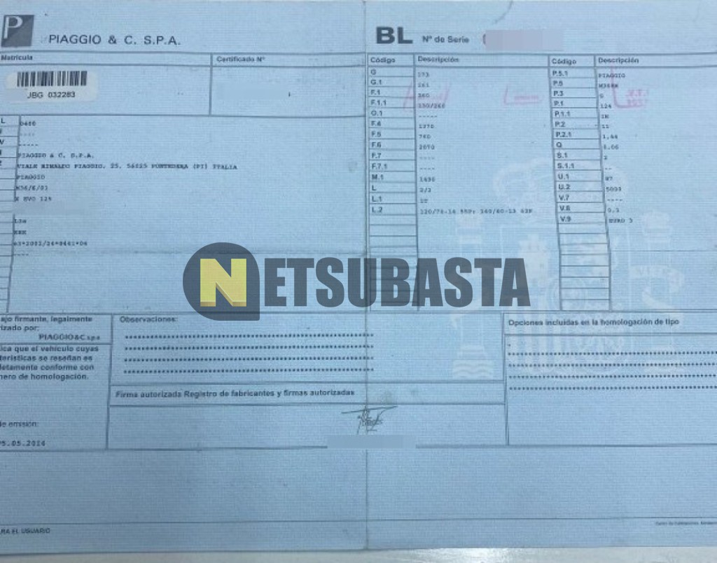 Subasta de Piaggio X EVO 125 2014 Averiados, Marca Piaggio, Modelo X EVO 125, Combustible Gasolina, Kilometraje 32.000 KM, Fecha 1ª matriculación 11/2014, Matrícula ****JBG, Color Exterior , Color Interior , IVA REBU y Ubicación Madrid.