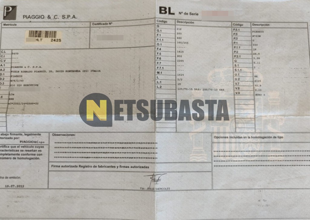 Subasta de Piaggio X10 350 2012 Averiados, Marca Piaggio, Modelo X10 350, Combustible Gasolina, Kilometraje 56.000 KM, Fecha 1ª matriculación 07/2012, Matrícula ****HLT, Color Exterior , Color Interior , IVA REBU y Ubicación Barcelona.