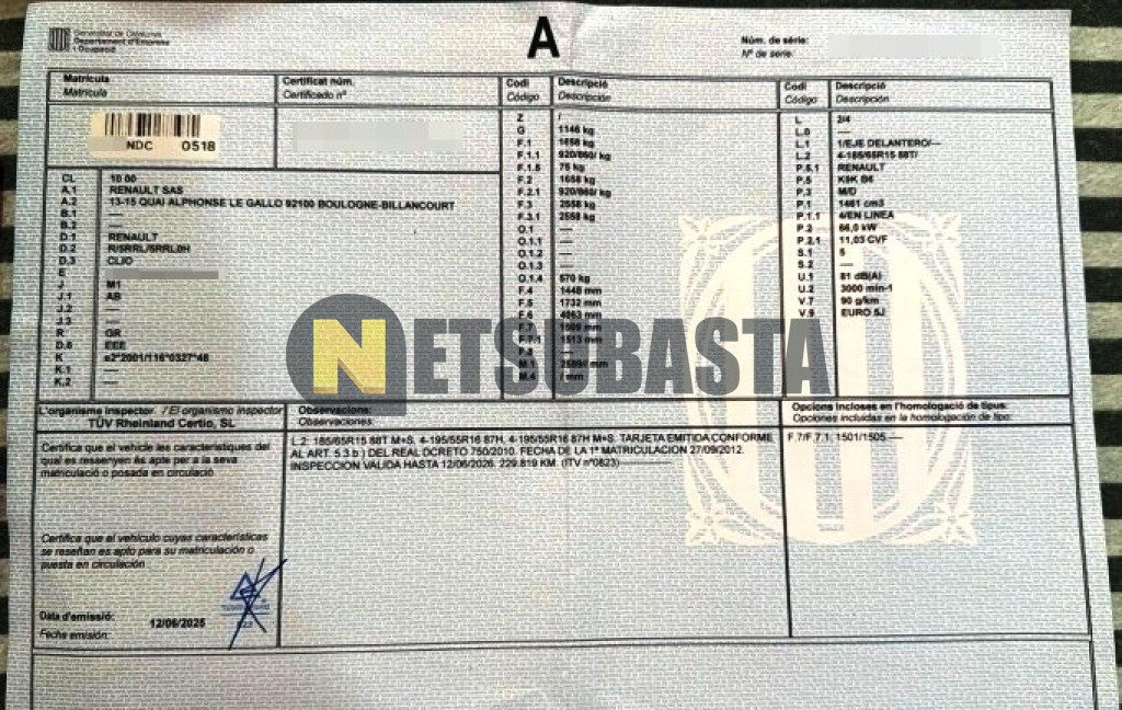 Subasta de Renault Clio 1.5 dCi 2012 Siniestrados, Marca Renault, Modelo Clio 1.5 dCi, Combustible Diésel, Kilometraje 245.000 KM, Fecha 1ª matriculación 09/2012, Matrícula ****NDC, Color Exterior , Color Interior , IVA REBU y Ubicación Barcelona.