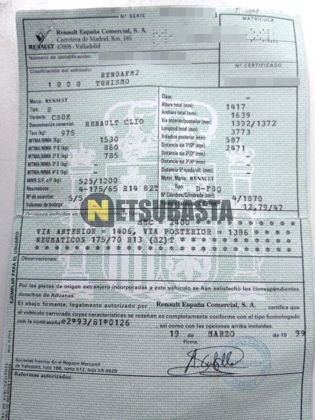 Subasta de Renault Clio 1.9D 1999 Siniestrados, Marca Renault, Modelo Clio 1.9D, Combustible Diésel, Kilometraje 230.000 KM, Fecha 1ª matriculación 04/1999, Matrícula M****XL, Color Exterior , Color Interior , IVA REBU y Ubicación Badajoz.
