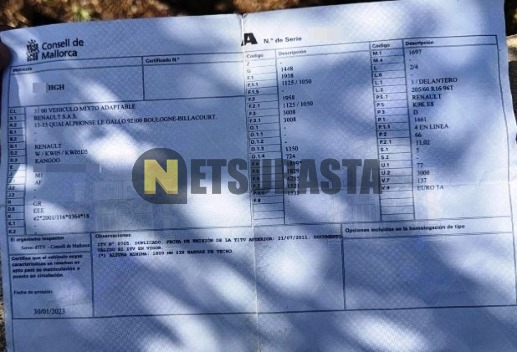 Subasta de Renault Kangoo Combi 1.5 dCi 2011 Siniestrados, Marca Renault, Modelo Kangoo Combi 1.5 dCi, Combustible Diésel, Kilometraje 337.000 KM, Fecha 1ª matriculación 09/2011, Matrícula ****HGH, Color Exterior , Color Interior , IVA REBU y Ubicación Islas Baleares.