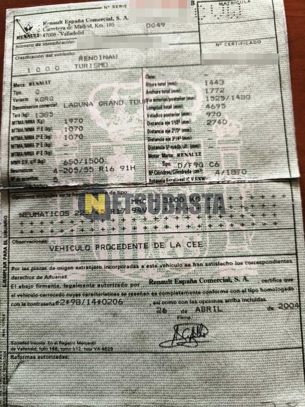 Subasta de Renault Laguna Grand Tour 1.9 dCi 2004 Averiados, Marca Renault, Modelo Laguna Grand Tour 1.9 dCi, Combustible Diésel, Kilometraje 240.000 KM, Fecha 1ª matriculación 05/2004, Matrícula ****CVW, Color Exterior , Color Interior , IVA REBU y Ubicación Madrid.