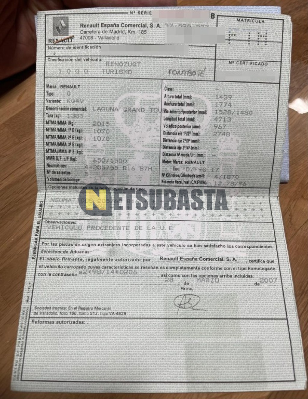 Subasta de Renault Laguna Grand Tour 1.9 dCi 2007 Siniestrados, Marca Renault, Modelo Laguna Grand Tour 1.9 dCi, Combustible Diésel, Kilometraje 120.000 KM, Fecha 1ª matriculación 07/2007, Matrícula ****FTH, Color Exterior , Color Interior , IVA REBU y Ubicación Tarragona.