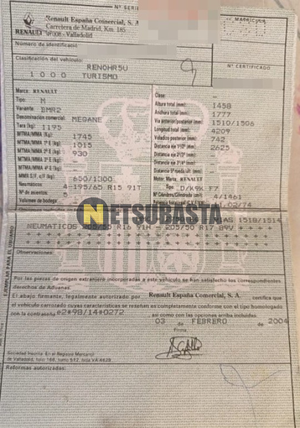 Subasta de Renault Megane 1.5 dCi 2004 Averiados, Marca Renault, Modelo Megane 1.5 dCi, Combustible Diésel, Kilometraje 245.000 KM, Fecha 1ª matriculación 02/2004, Matrícula ****CSD, Color Exterior , Color Interior , IVA REBU y Ubicación Málaga.