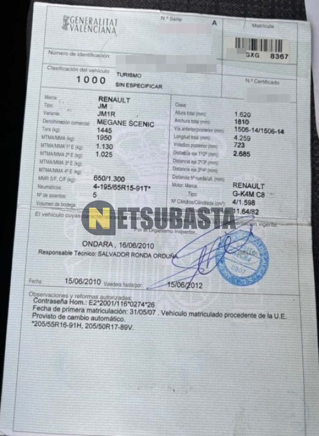 Subasta de Renault Scenic 1.6 Aut. 2007 Averiados, Marca Renault, Modelo Scenic 1.6 Aut., Combustible Gasolina, Kilometraje 145.000 KM, Fecha 1ª matriculación 05/2007, Matrícula ****GXG, Color Exterior , Color Interior , IVA REBU y Ubicación Madrid.