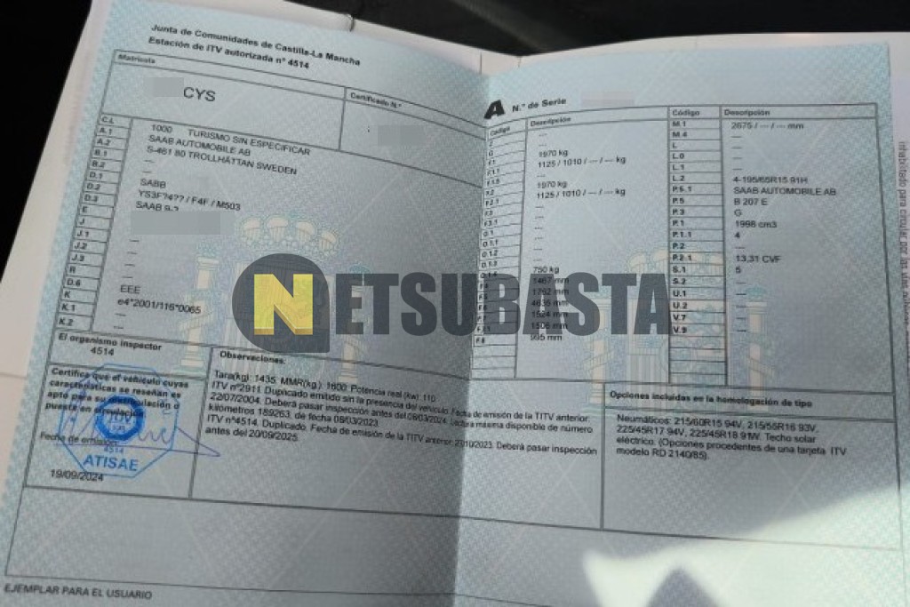 Recuerde que si lo desea, puede imprimir la ficha del vehículo Saab 9-3 1.8t Ecopower 2004 con todas sus características técnicas.